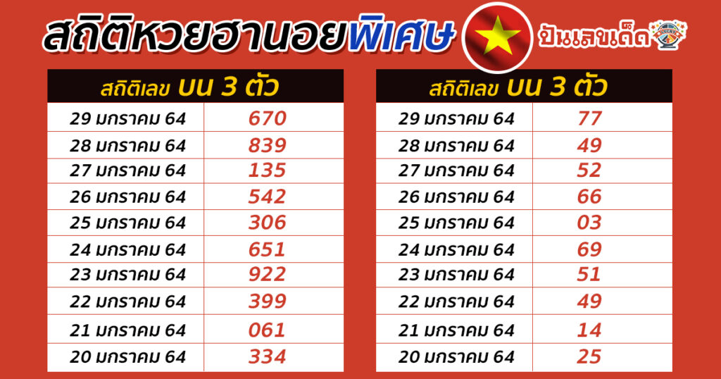สถิติหวยฮานอย พิเศษ ย้อนหลัง 10 งวด