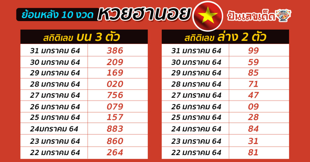 รวมสถิติ หวยฮานอย ออกย้อนหลัง 10 งวด