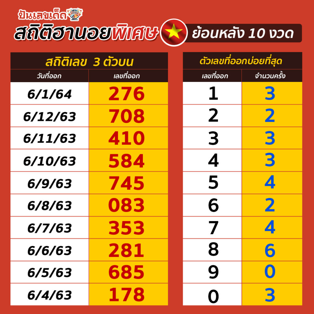 สถิติ ฮานอย พิเศษ ออกย้อนหลัง 10 งวด