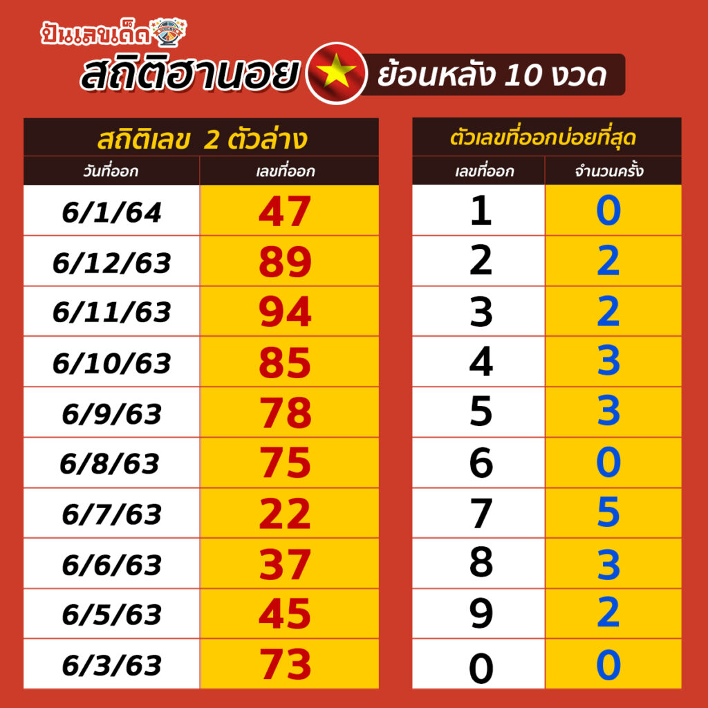 แนวทางฮานอย สถิติฮานอย ย้อนหลัง 10 งวด