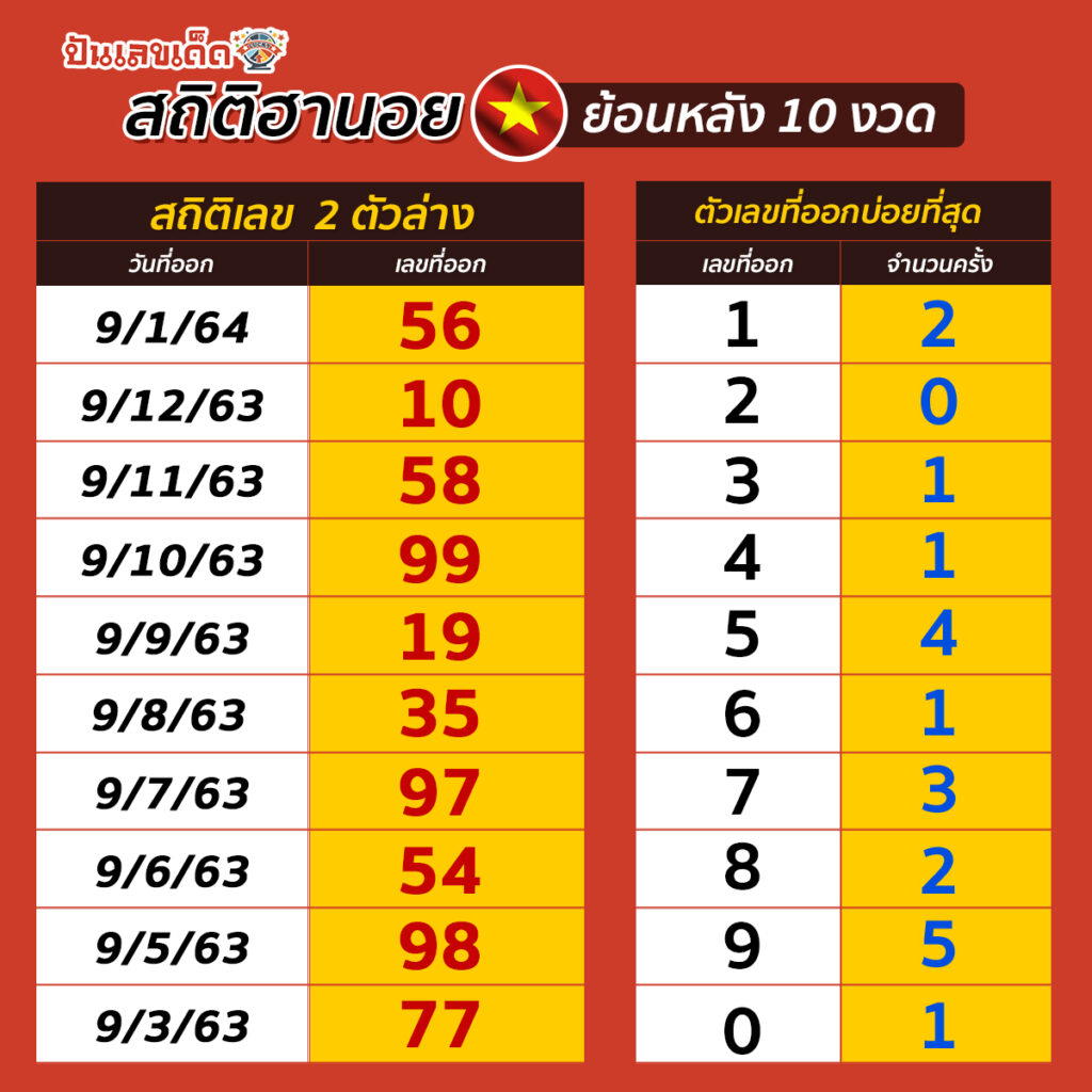 แนวทางฮานอย สถิติฮานอย ย้อนหลัง 10 งวด