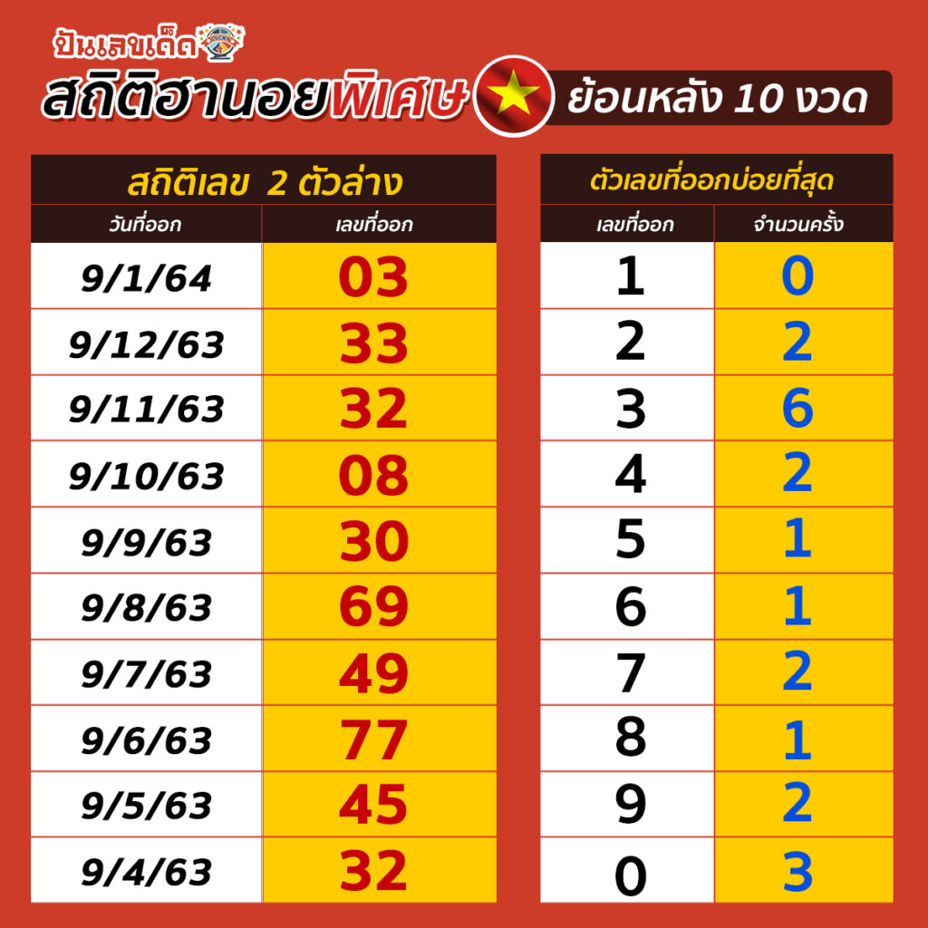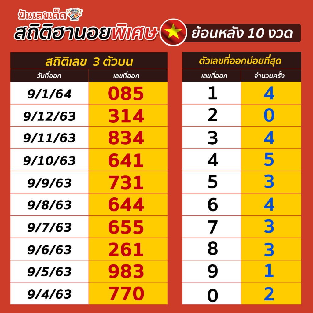 รวมสถิติฮานอย พิเศษ ย้อนหลัง 10 งวด