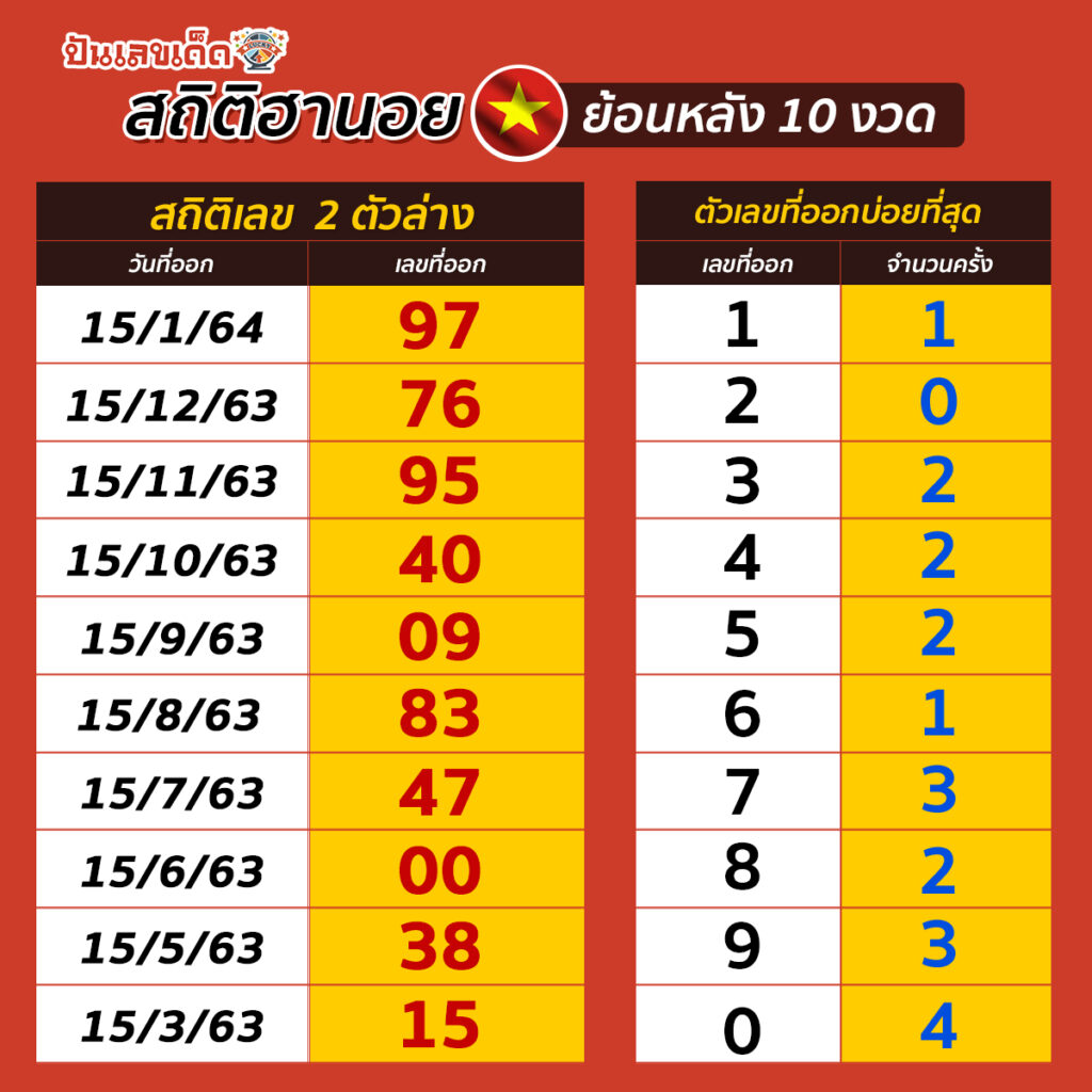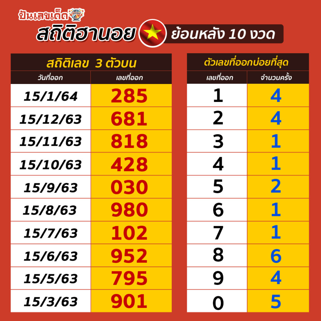 แนวทางฮานอย สถิติฮานอย ย้อนหลัง 10 งวด