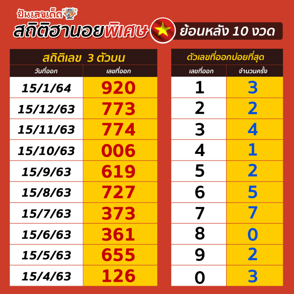 รวมสถิติฮานอย พิเศษ ย้อนหลัง 10 งวด