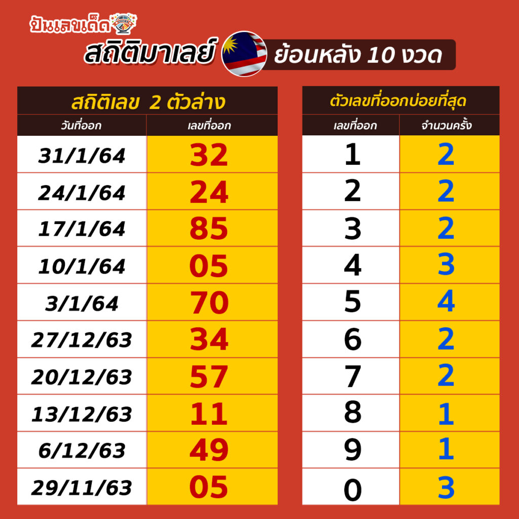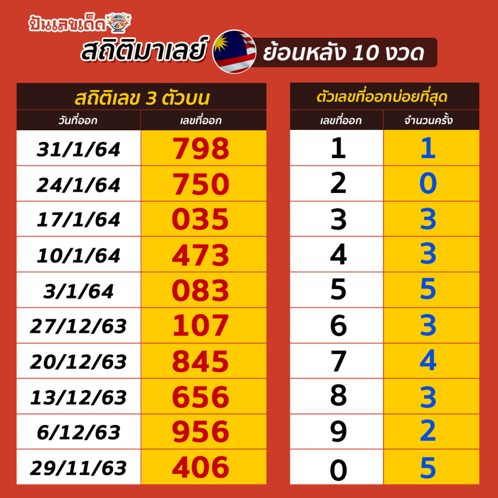 ปันเลขเด็ด สรุปสถิติมาเลย์