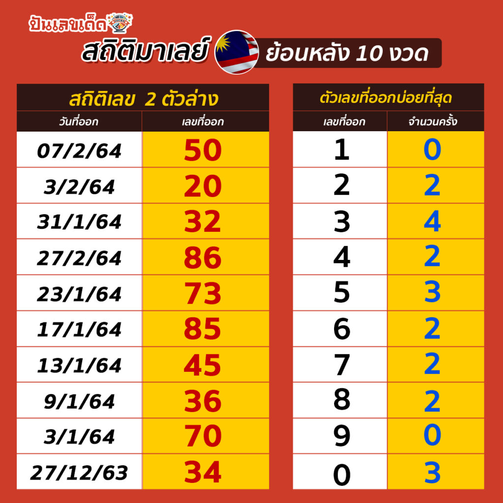 ปันเลขเด็ด สรุปสถิติมาเลย์