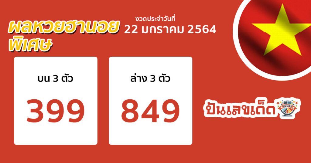 ผลหวยฮานอยพิเศษ วันที่ 22 ม.ค. 64