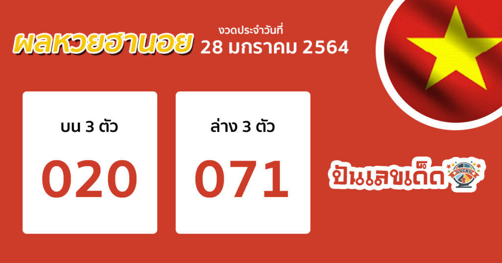 ผลหวยฮานอยปกติ วันที่ 28 ม.ค. 64