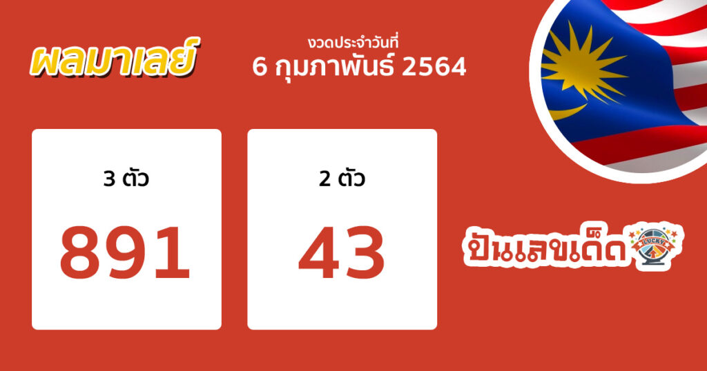 ผลหวยมาเลย์วันที่ 6 ก.พ. 64